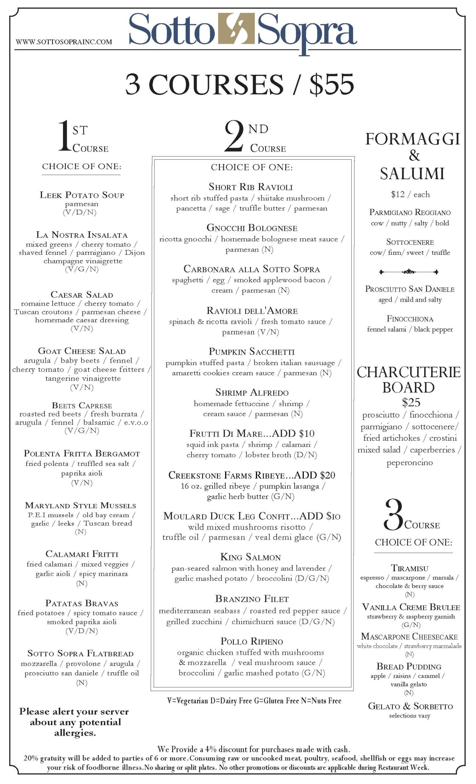 *For menu questions or allergy information, please contact the restaurant directly. Many restaurants do not allow menu substitutions during Restaurant Week. Gratuity is almost always added to parties of 6 or more for dine-in service. Alcohol sales are for guests ages 21+ with valid ID.